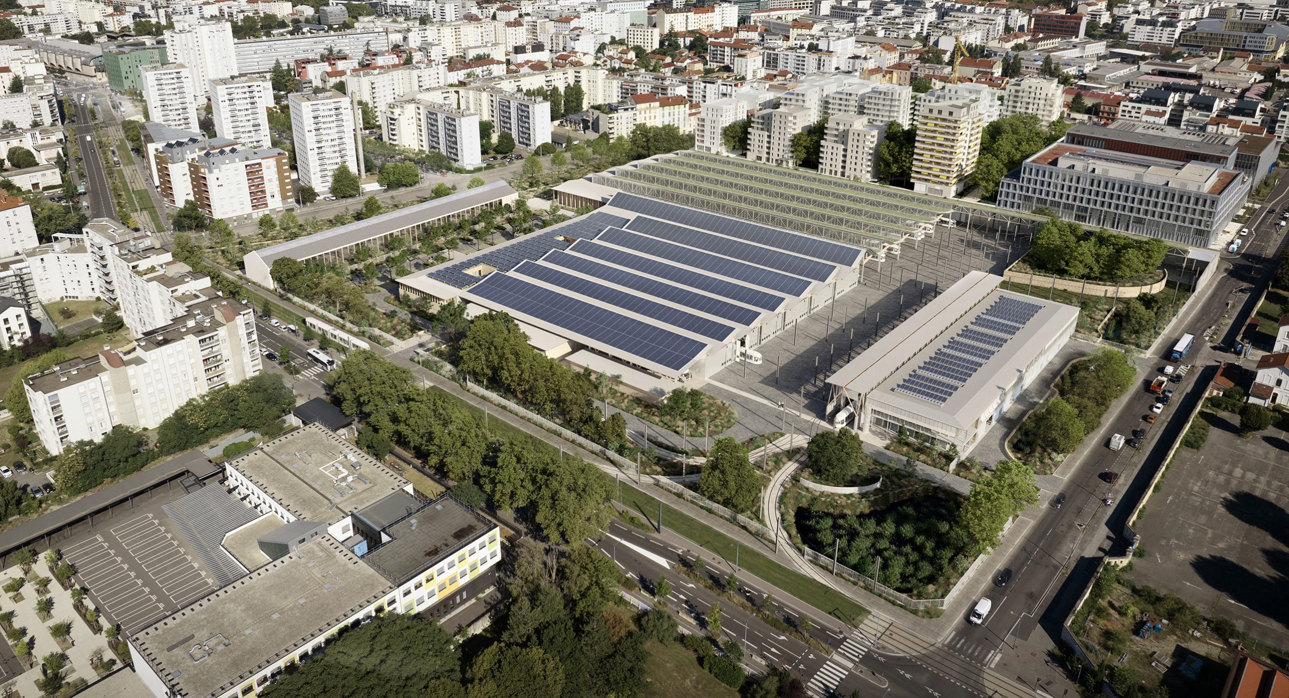 The SYTRAL tram network is expanding and requires a new tram maintenance center. The former Fagor industrial zone, located in the immediate vicinity of the heart of the Lyon metropolitan area and connected to the T6 line, will accommodate 66 trams.